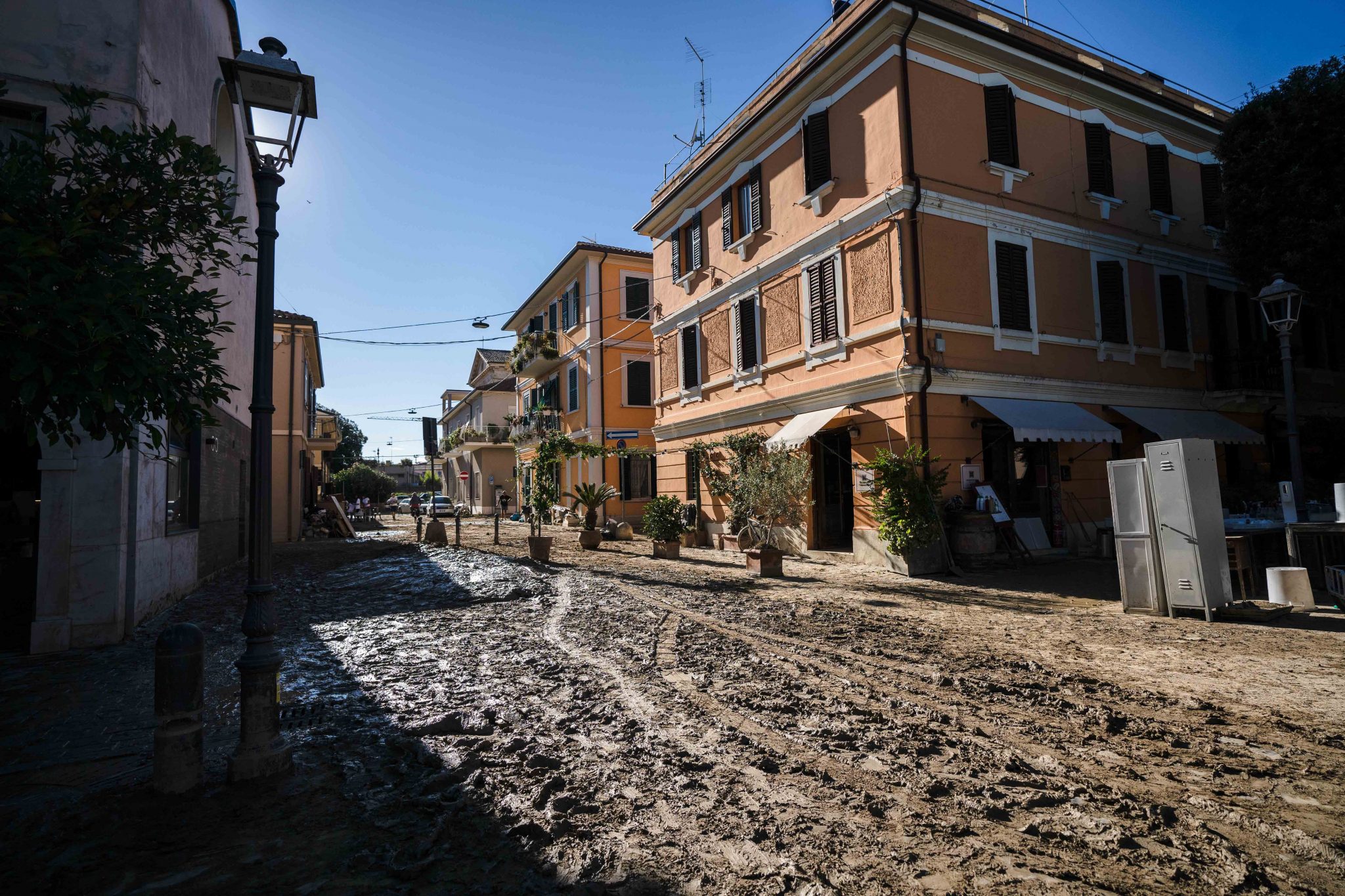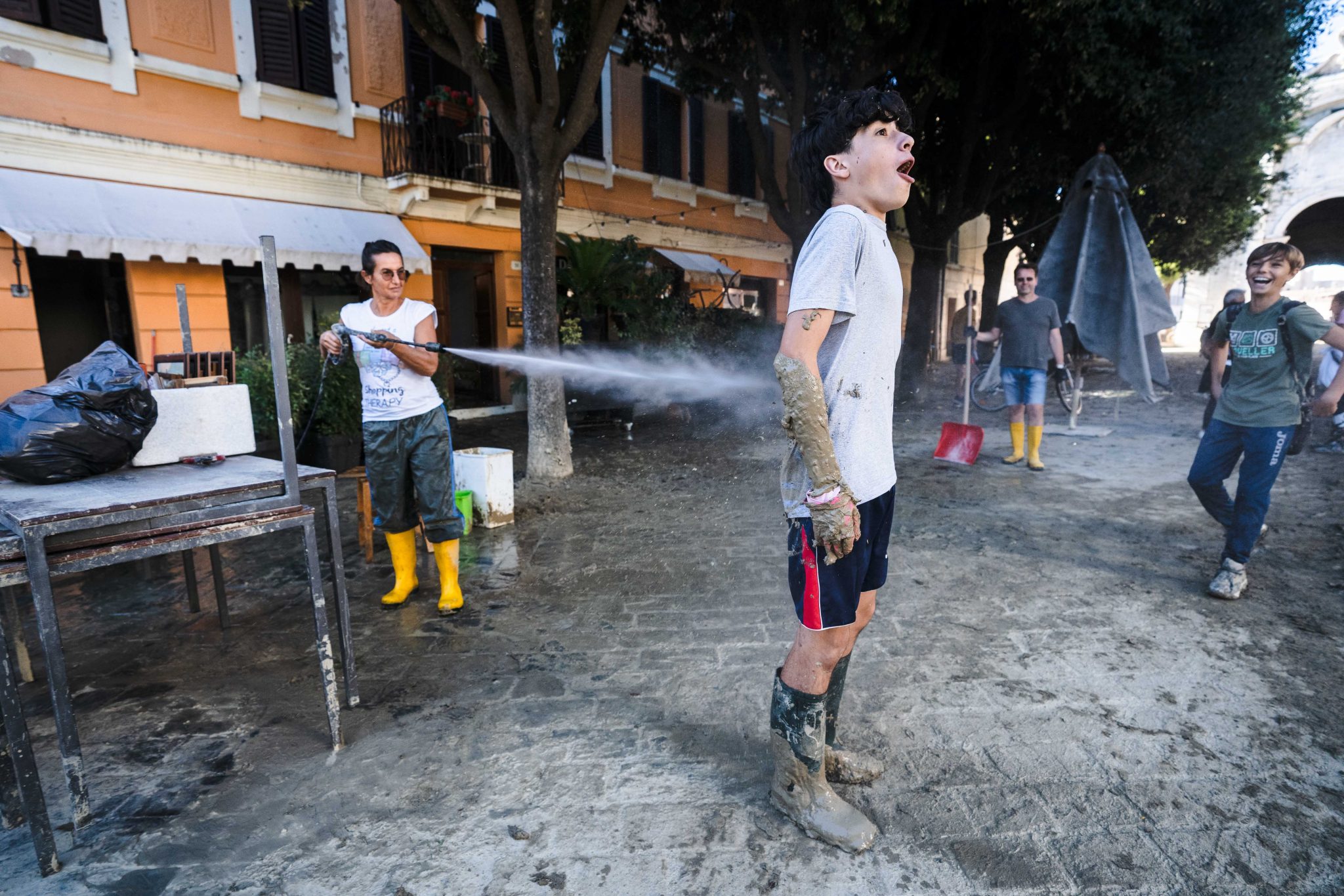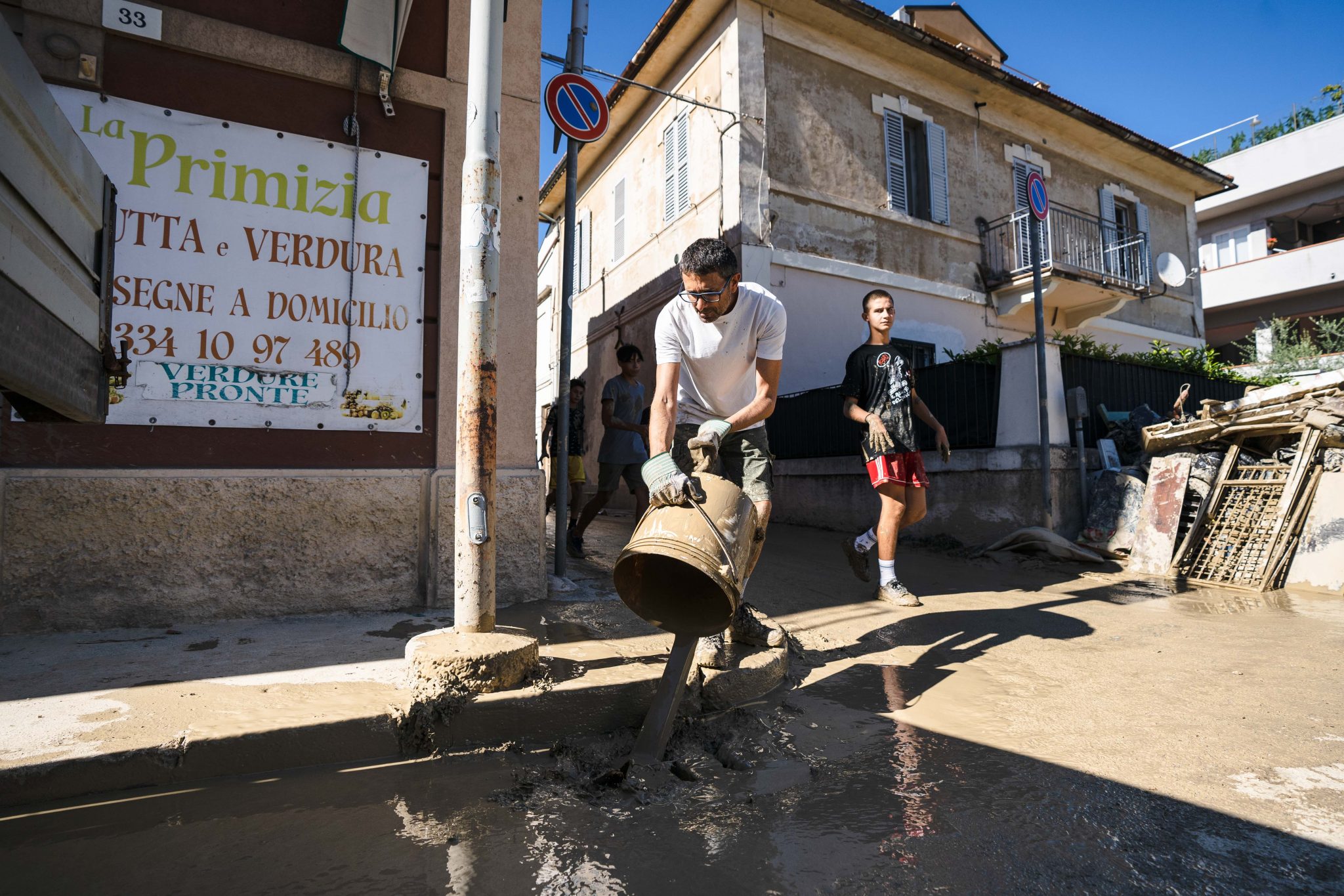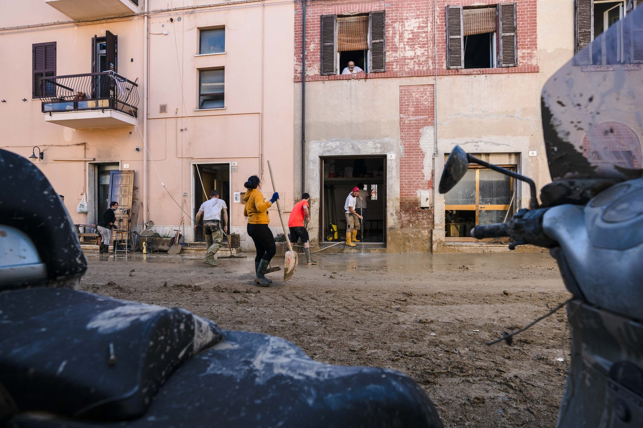 Gli abitanti di Senigallia ripuliscono le case e la città dal fango dopo l’alluvione del 15/09/2022